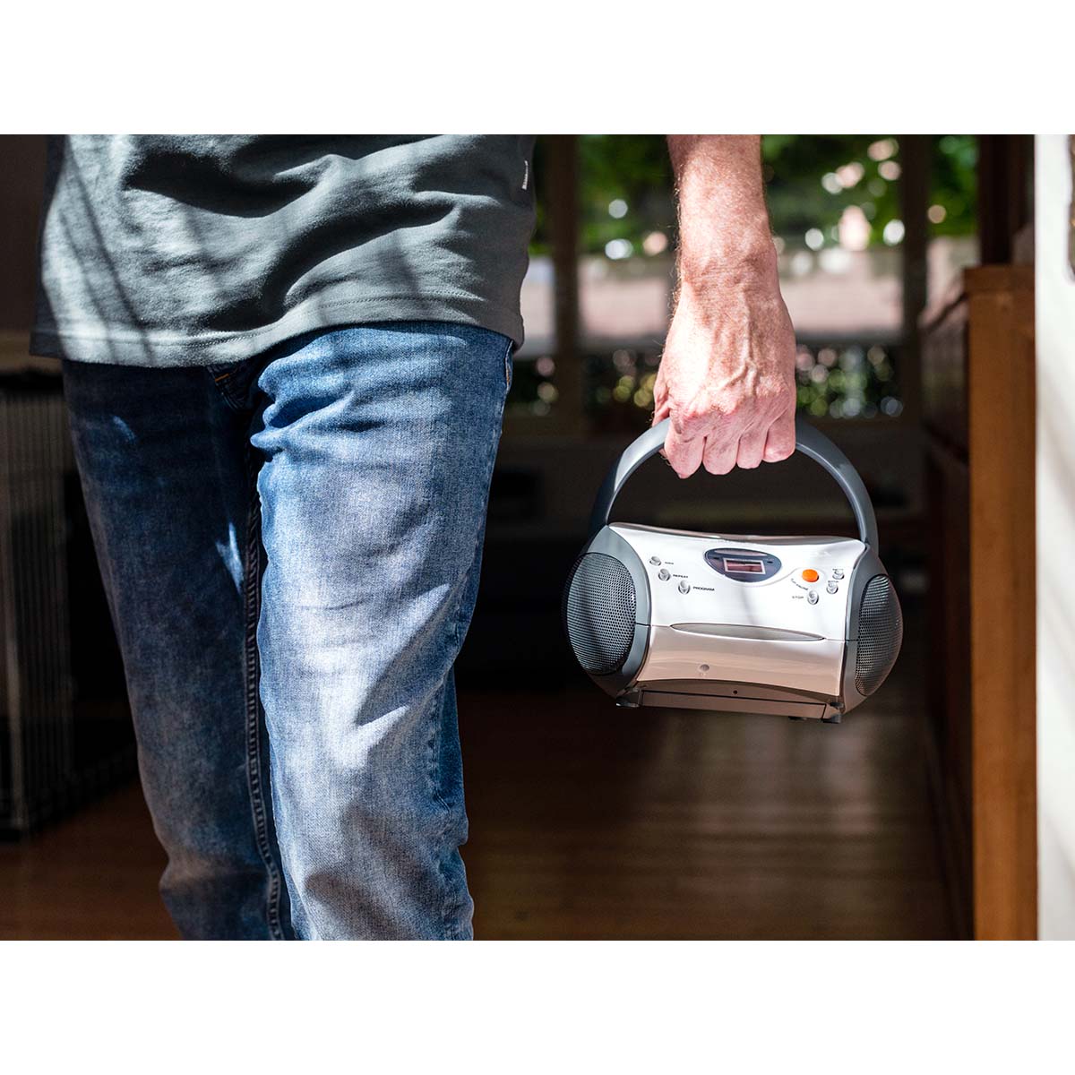 La radio Lenco SCD-24 dispose d’un format compact et est équipée d’une poignée, ce qui permet de la transporter facilement. La radio Lenco SCD-24 peut ainsi vous accompagner au parc ou à une fête chez des amis. Dansez sur le son de votre radio portable et chantez sur les tubes de votre artiste préféré. La radio Lenco SCD-24 apporte de la couleur à la musique. Vous souhaitez pouvoir écouter vos morceaux préférés partout et tout le temps ? Grâce à la mémoire programmable, vous pouvez enregistrer des chansons et ne plus écouter que vos morceaux préférés.