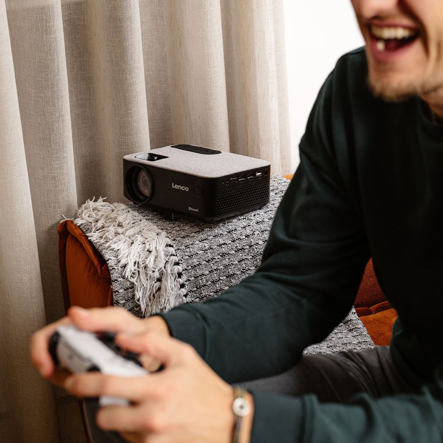 Transformez votre salon en véritable salle de cinéma avec le projecteur LPJ-700 de Lenco. D’une intensité lumineuse de 4 000 lumens et d’un taux de contraste de 3 000:1, il vous permet de bénéficier d’une qualité d’image nette et exceptionnelle. Il est donc parfait lorsque vous diffusez en streaming des films, des séries Netflix ou des jeux sur votre téléviseur via un dongle de diffusion (tel que Chromecast). Ce projecteur HD dispose d’une résolution de 1 280 x 720 et prend en charge la définition Full HD 1080p. La distance de projection est comprise entre un et cinq mètres pour une image optimale. La taille de projection maximale de l’appareil est de 300 cm. Tout ce dont vous avez besoin pour créer votre salle de cinéma à la maison.