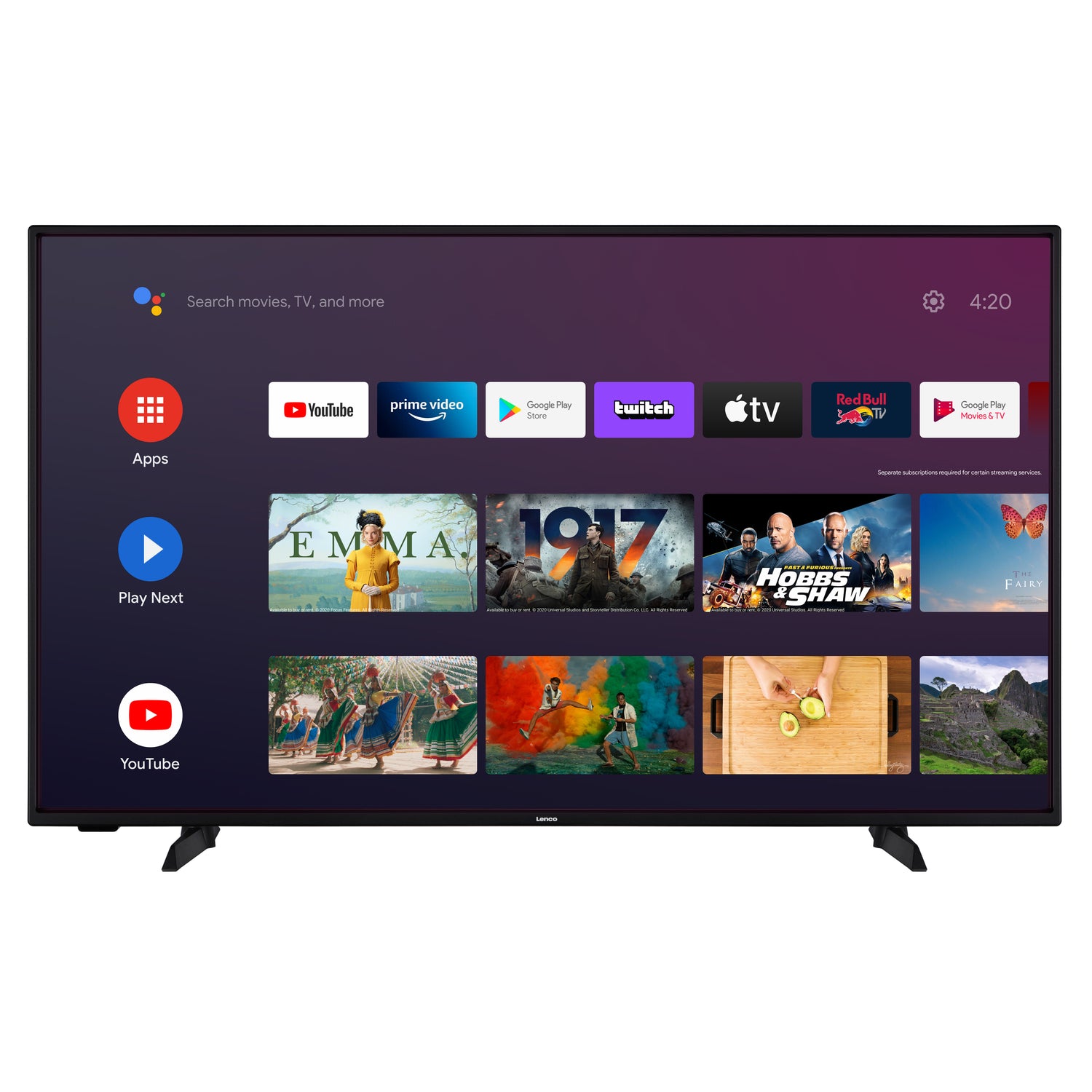 Le téléviseur Lenco LED-4353BK peut être connecté à Internet en Wi-Fi ou via un câble réseau. Le menu clair vous permet de sélectionner facilement l’une des nombreuses applications disponibles, vous pouvez également utiliser le navigateur. Les services Netflix, Amazon Prime, Disney+, Apple TV et YouTube sont déjà installés. Vous pouvez installer les applications de votre choix via le Google Play Store. Vous pouvez facilement lire vos séries et films préférés en streaming avec une très grande netteté et vous pouvez basculer rapidement de la télévision en direct vers les applications.