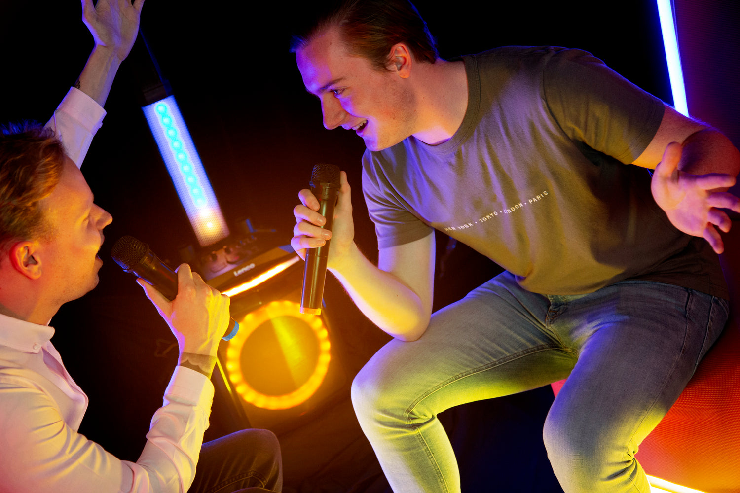 L’ensemble Lenco MCW-020 comprend deux microphones sans fil et un récepteur commun. Il est conçu pour une reproduction claire de la voix et du chant. Il est parfait en association avec les enceintes Lenco PA et les enceintes de fête. Grâce au récepteur unique qui assure la reproduction des deux microphones, vous n’avez besoin que d’une entrée de microphone pour les deux microphones. Il s’agit de microphones dynamiques avec une grille en métal et une directivité cardioïde, ce qui leur permet de résister aux chocs et d’être moins sensibles à l’effet de Larsen. Le microphone Lenco MCW-020 est le choix qui s’impose pour les soirées karaoké, les mariages ou les conférences en raison de sa facilité d’utilisation et de sa portée de 15 mètres. Le mini-récepteur sans fil, avec connecteur mâle de 6,3 mm, peut être directement branché à l’entrée du microphone et est alimenté par une pile AA. Vous n’avez pas besoin de câbles ou d’adaptateurs supplémentaires. Les deux microphones sont alimentés par deux piles AA et disposent d’un interrupteur marche/arrêt. L’ensemble est fourni avec les piles AA et fonctionne au moins six heures sans interruption lorsqu’il est totalement chargé. Les microphones sans fil fonctionnent à des fréquences fixes de 863,5 et 864,5 MHz.
