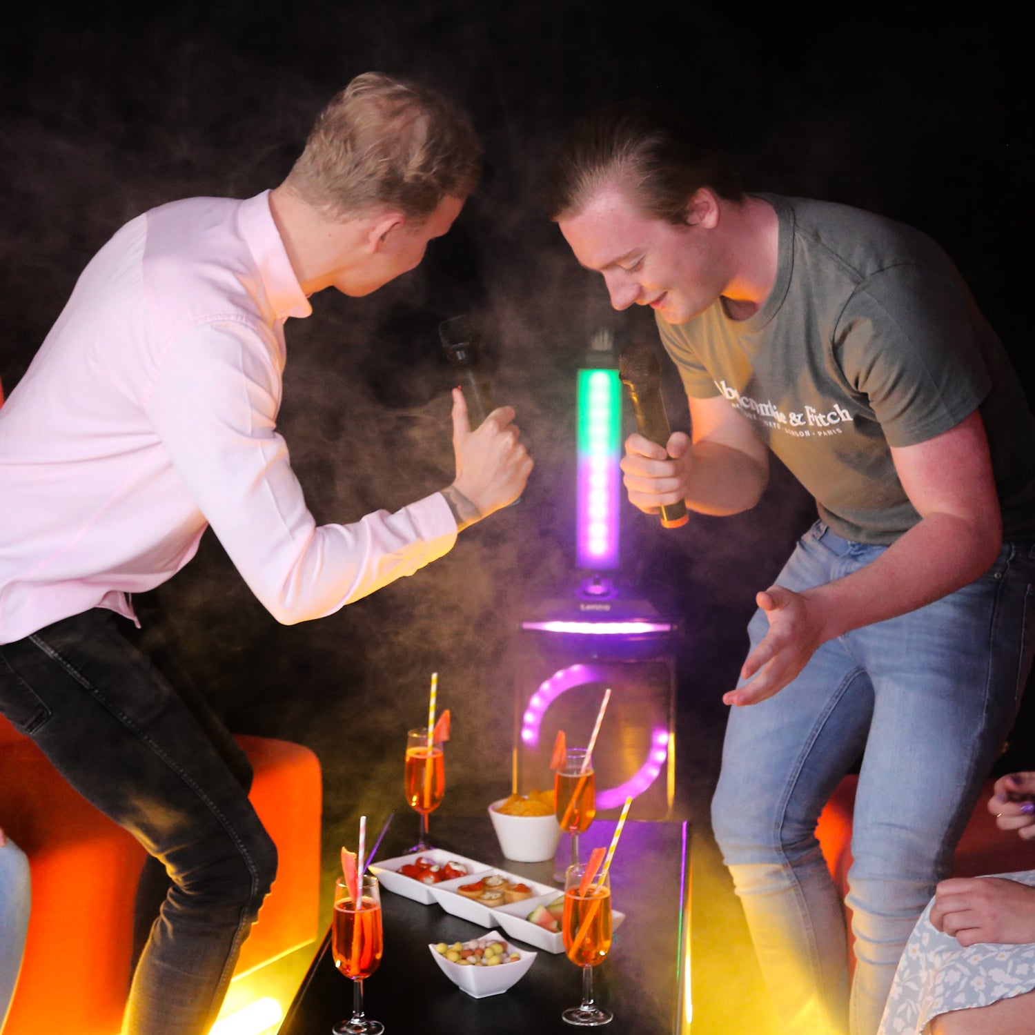 Pas de fête réussie sans cette enceinte PA-220 ! L’éclairage à l’avant vous permet de transformer immédiatement la pièce en véritable boîte de nuit. Les effets lumineux peuvent être adaptés au rythme de la musique. Deux microphones sans fil, qui permettent de chanter au rythme de la musique, sont également fournis. Vous n’avez pas envie de chanter ? Vous pouvez facilement ranger les microphones dans les supports prévus à cet effet sur l’enceinte.