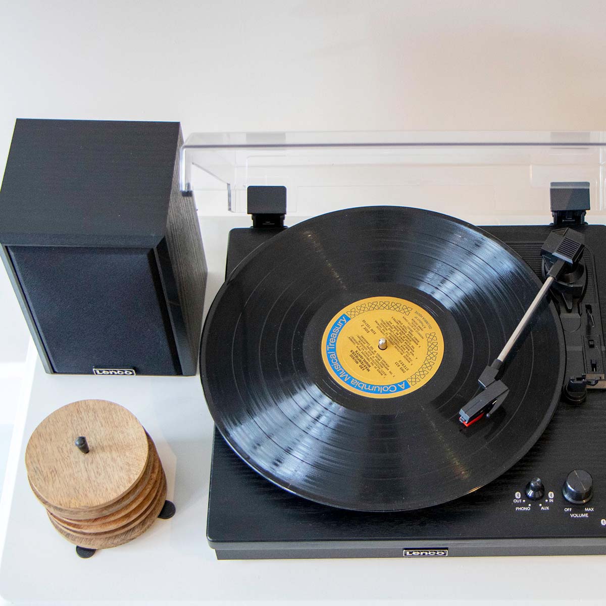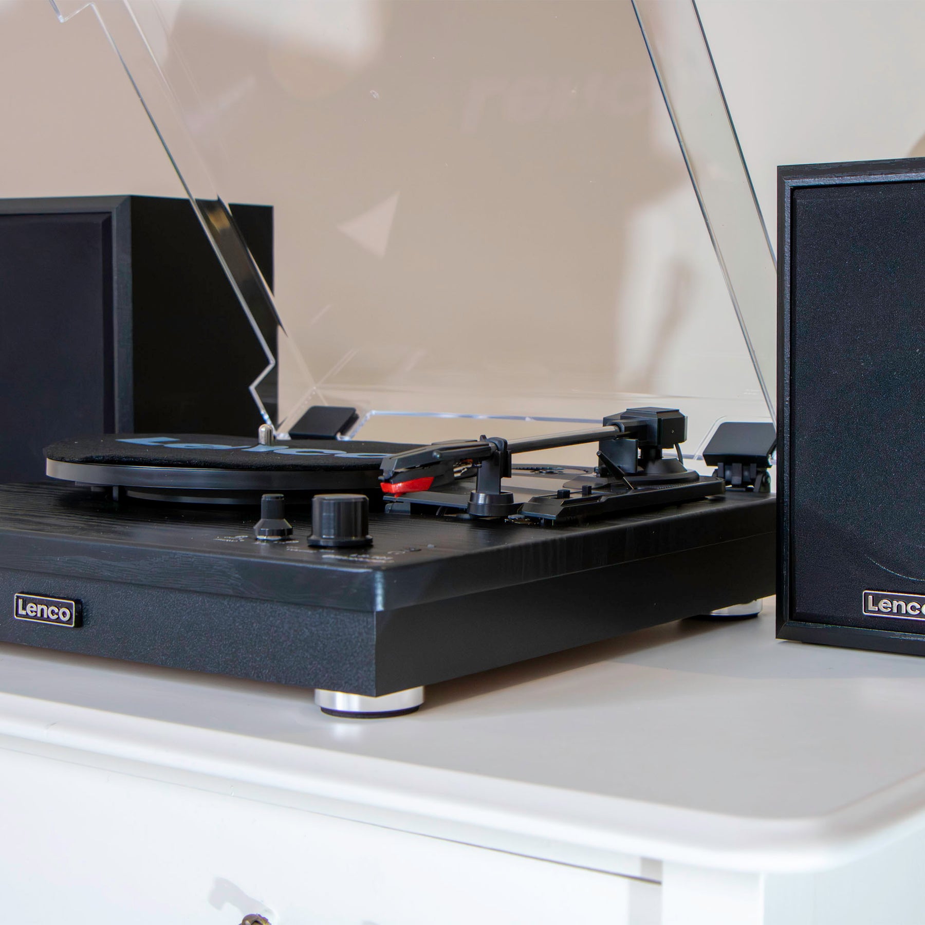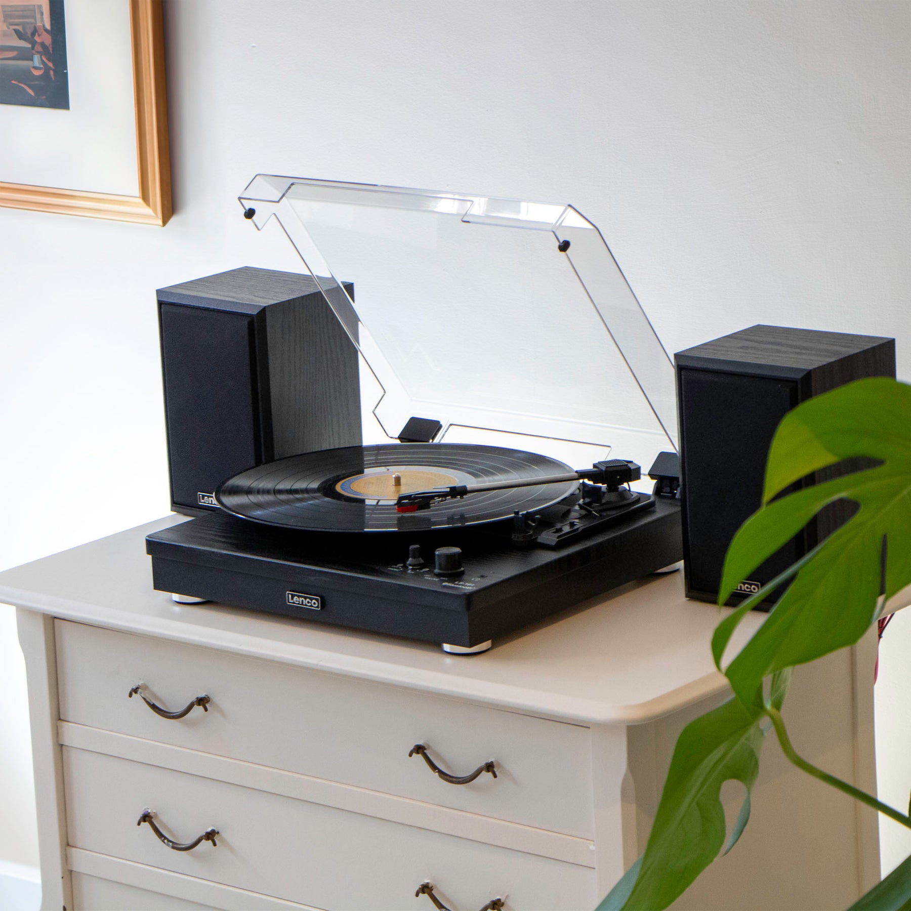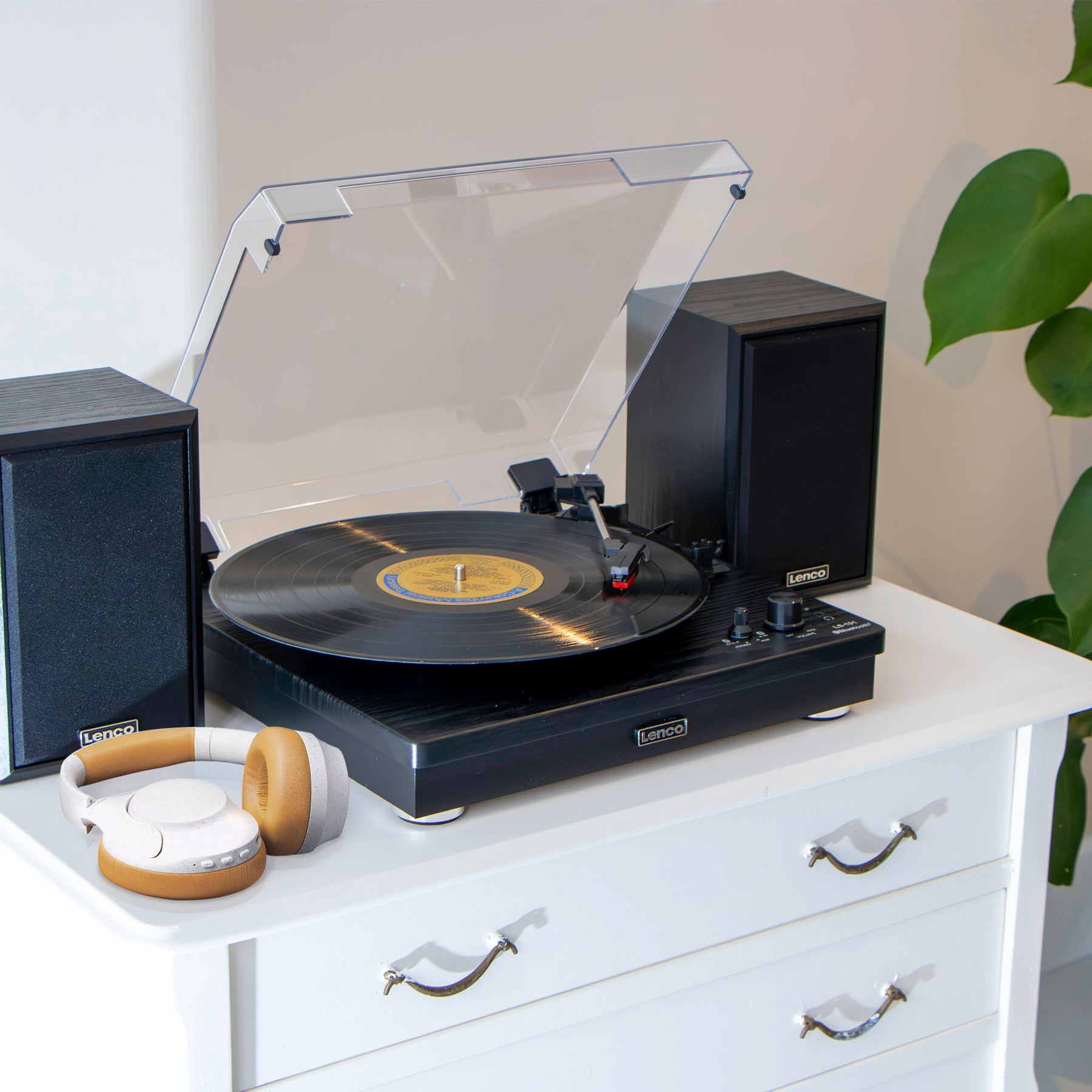 La platine LS-101BK de Lenco vous permet de profiter de votre collection de vinyles. Grâce à ses deux haut-parleurs d’une puissance de sortie de 10 W RMS chacun, vous bénéficiez d’une qualité audio aussi élevée que possible pour l’écoute de votre musique. Vous pouvez également installer les haut-parleurs à distance de la platine et créer ainsi un effet stéréo.