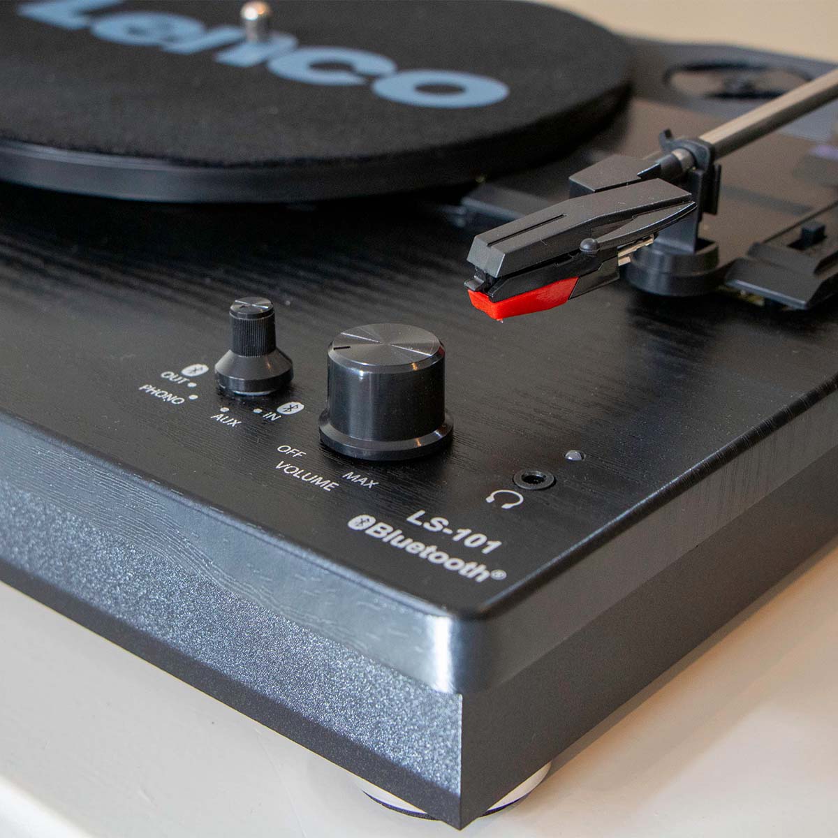 La platine LS-101BK dispose de différentes fonctions modernes et offre plusieurs possibilités de lecture. Les vinyles peuvent ainsi être lus à trois vitesses différentes : 33, 45 et 78 tours par minute. Grâce au système d’arrêt automatique, le bras cesse automatiquement de tourner une fois la fin du disque atteinte. Les 33 tours étant entraînés par une courroie, il n’y a pas de vibrations indésirables pour perturber le signal sonore. La platine LS-101BK est également équipée d’une commande de variation de vitesse.