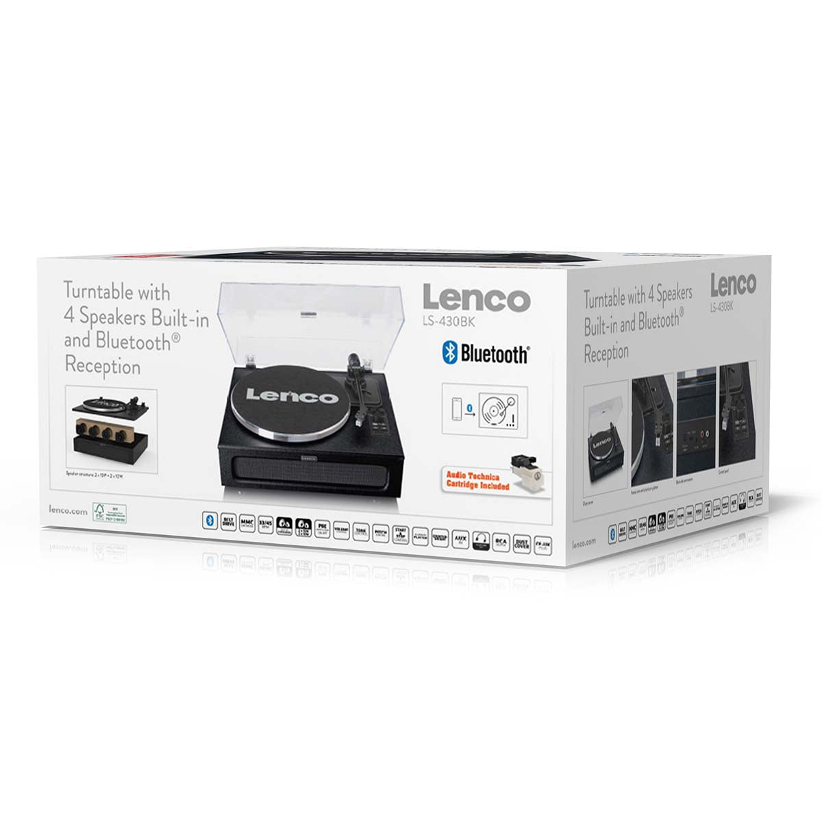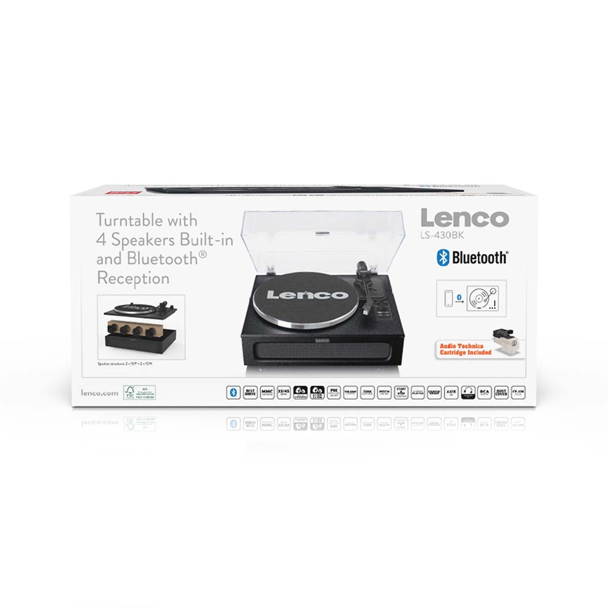 La platine LS-430 de Lenco est une platine à haut-parleurs intégrés. Les quatre haut-parleurs, deux de 15 Watts et deux de 10 Watts, assurent un son bien équilibré. La platine est simple d’utilisation, il vous suffit de brancher la fiche dans une prise électrique pour profiter de vos 33 tours préférés. Vous pouvez également lire la liste de votre smartphone ou de votre tablette en streaming sur les haut-parleurs de la platine via le Bluetooth® 5.0. Vous souhaitez vous isoler et vous détendre au son de vos morceaux préférés ? Il vous suffit de raccorder un casque.