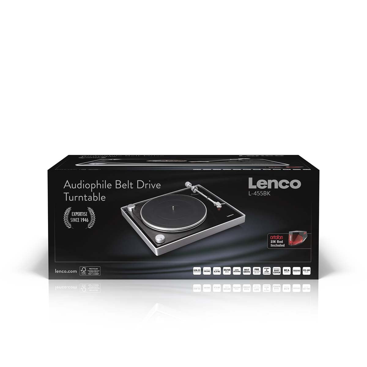 Découvrez la Lenco L-455BK, une platine vinyle haut de gamme de la gamme Expertise de Lenco, équipée d’un entraînement par courroie visible, d’un cadre en aluminium brossé et de la cellule à aimant mobile Ortofon 2M RED. Son design unique, avec une courroie visible à l’extérieur, dégage modernité et raffinement. La L-455BK est également dotée d’un plateau en métal de 300 mm qui, associé à l’entraînement par courroie, garantit une rotation fluide et stable. Grâce à la cellule Ortofon 2M RED de haute qualité et au contrôle automatique et à la correction de la vitesse de rotation, vos disques sont toujours lus avec une précision ultime. Avec la commande start-stop et le levier de bras mécanique, vous bénéficiez d’une expérience utilisateur intuitive et professionnelle. Vous êtes un véritable audiophile ? Lisez la suite et laissez-vous inspirer par la Lenco L-455BK, une platine vinyle qui offre l’équilibre parfait entre technologie, design et qualité sonore exceptionnelle.