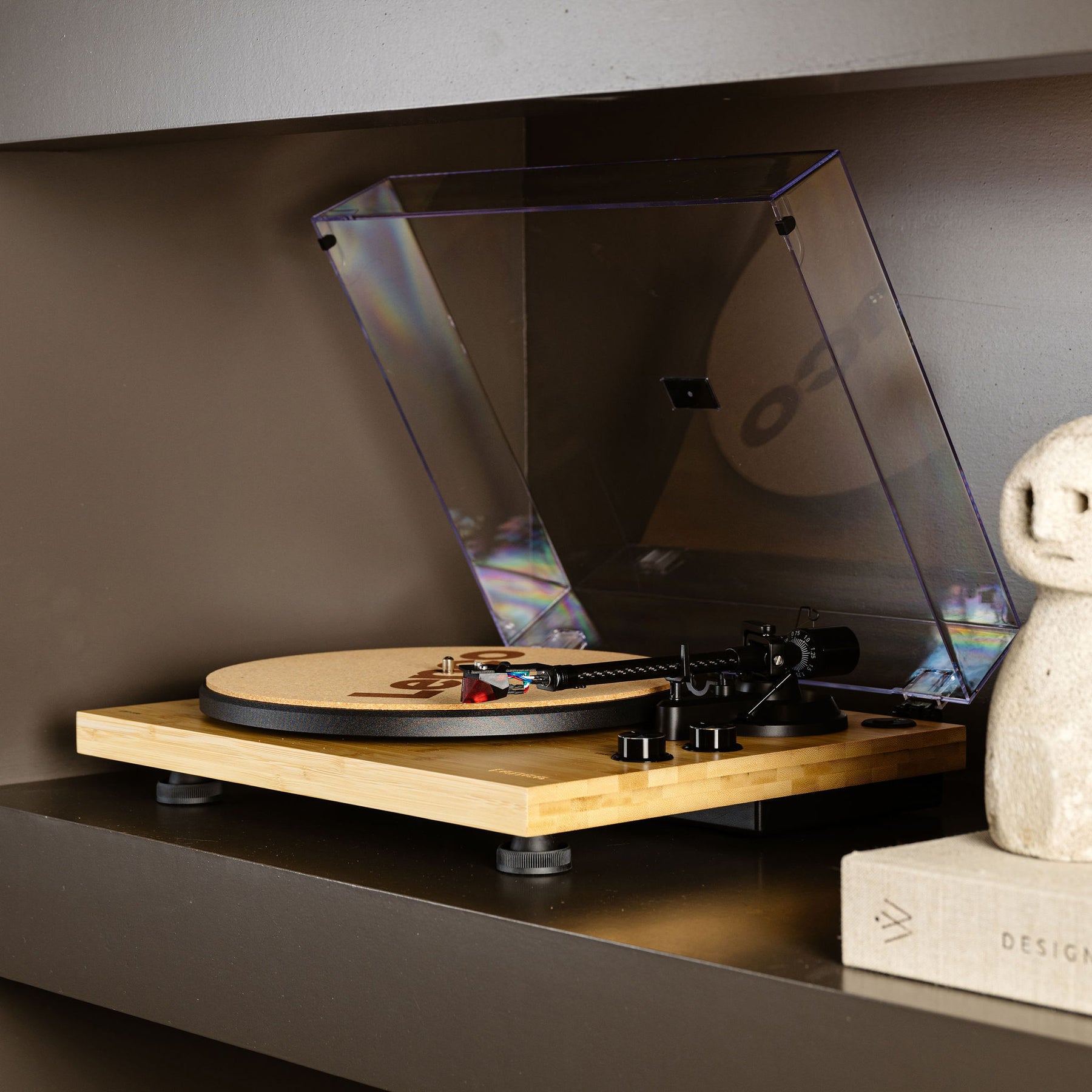 La Lenco LBT-335BA vous accueille dans le monde de la qualité sonore impeccable et de la durabilité élégante. Cette platine vinyle Bluetooth® de haute qualité, récompensée par un prix, de la gamme d'expertise de Lenco, offre non seulement une expérience d'écoute raffinée, mais aussi un choix conscient pour un avenir plus durable. Le boîtier, fabriqué en véritable bambou avec certificat FSC, incarne une nouvelle norme de durabilité et de style dans l'équipement audio. Le LBT-335BA est également livré avec un élément Ortofon 2M Red, une cellule primée conçue pour les véritables amateurs, qui donne vie à chaque note avec précision. La platine est équipée, entre autres, d'un plateau tournant en métal, d'une transmission par courroie, d'un bras en fibre de carbone avec contrepoids et d'un capot amovible.