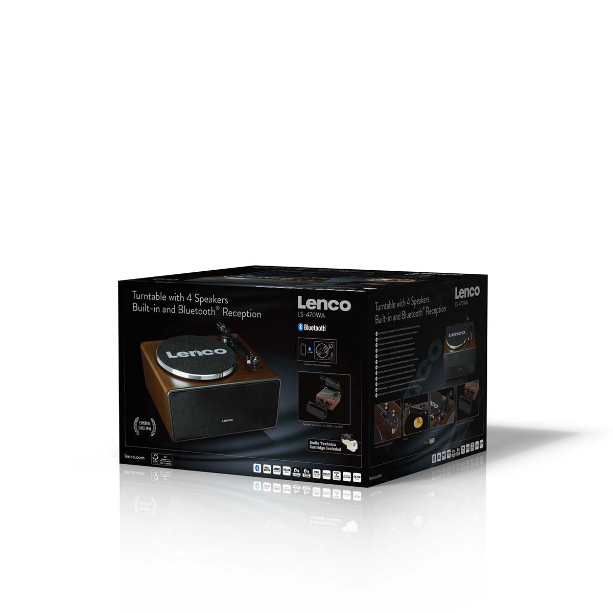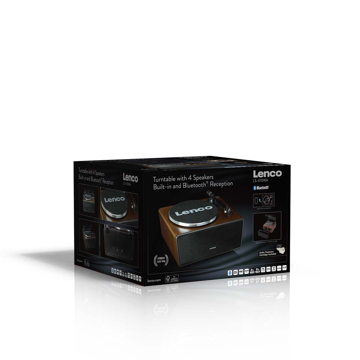 Faites connaissance avec le Lenco LS-470WA, une platine vinyle tout-en-un de la gamme d'expertise de Lenco avec un design magnifique et robuste dans l'élégante couleur de noyer. Le LS-470WA est une platine vinyle avec des haut-parleurs intégrés, une entraînement par courroie et Bluetooth®, livrée notamment avec une cartouche Audio Technica de haute qualité. Le capot anti-poussière amovible protège votre platine de la poussière, tandis que le design unique et la finition élégante en bois foncé ajoutent une touche de classe à l'environnement immédiat de la platine vinyle.