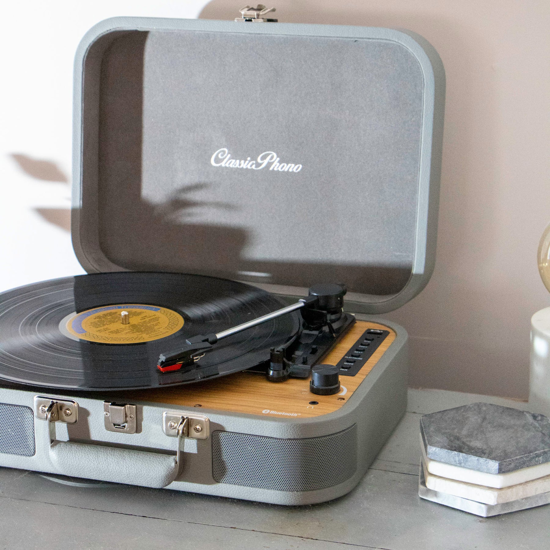 Classic Phono TT-116GY - Platine vinyle rétro Bluetooth® avec haut-parleurs intégrés