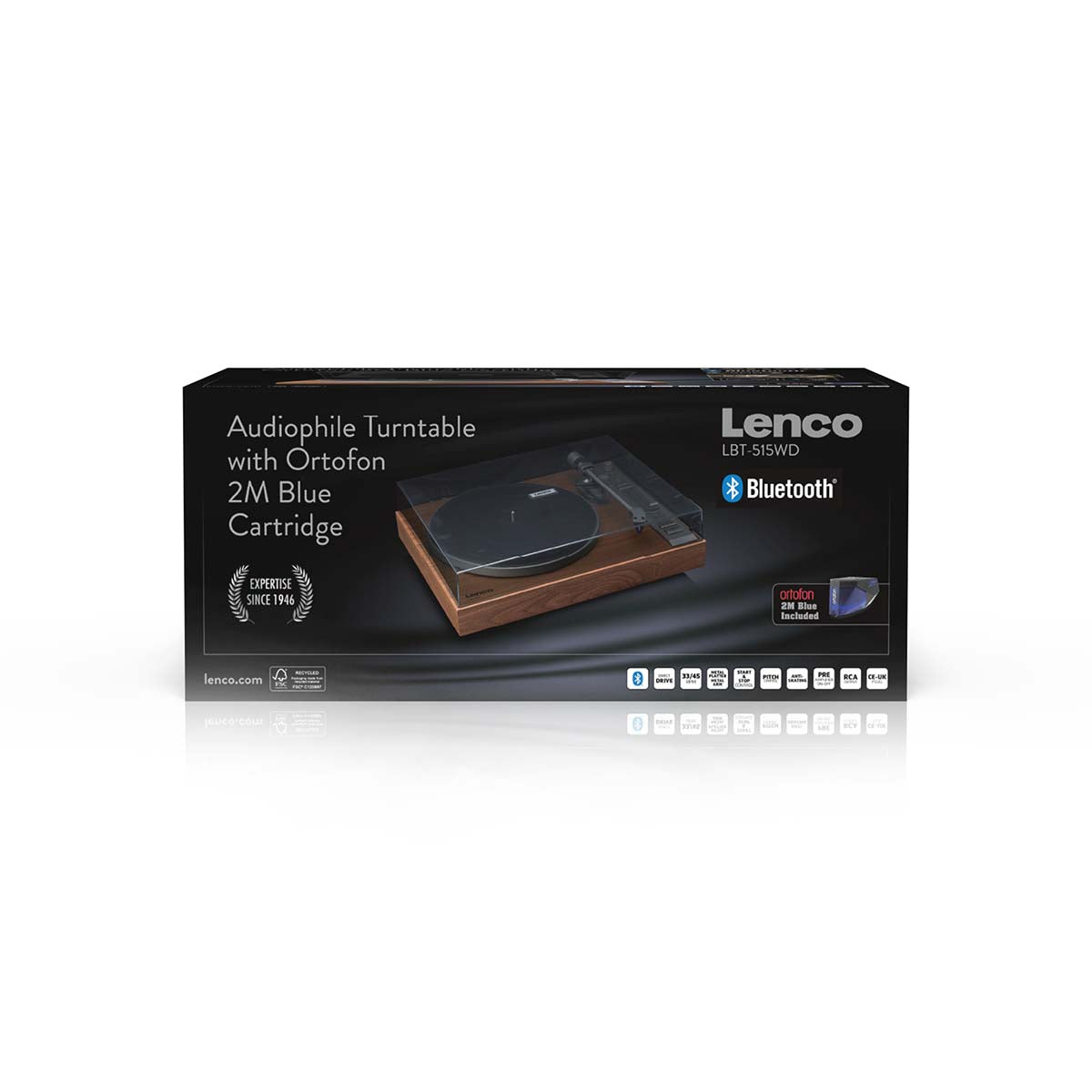 Lenco LBT-515WD - Platine vinyle haut de gamme à entraînement direct avec cellule Ortofon 2M Blue et Bluetooth® - Bois