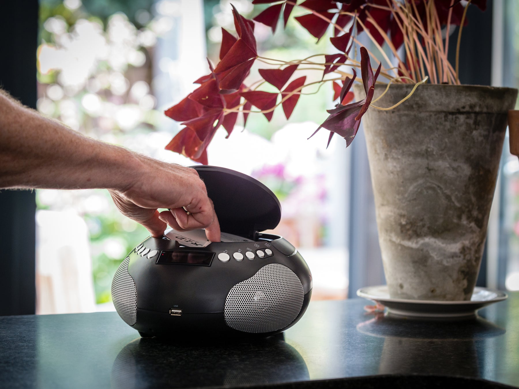 utiliser. Il vous suffit de la brancher à une prise de courant ou de l’équiper de piles. D’une pression sur une touche, vous profitez de votre station de radio ou de vos CD préférés.