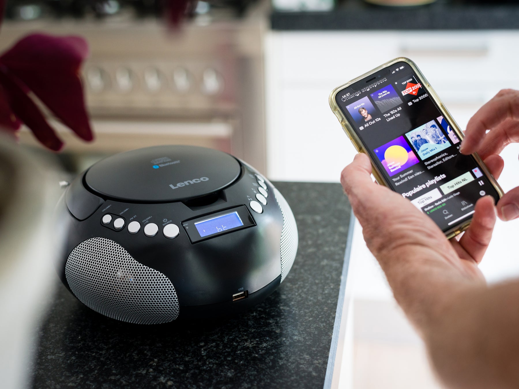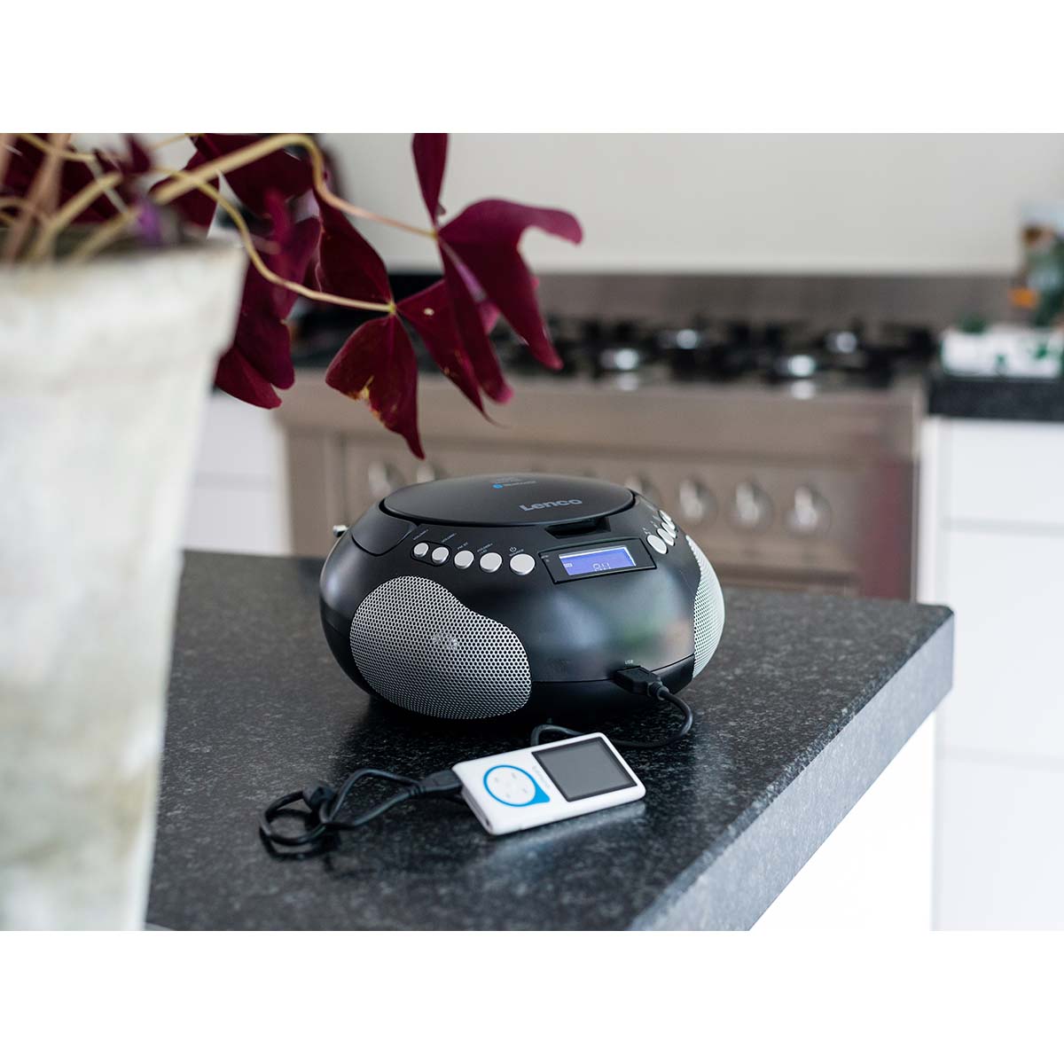 Lenco SCD-331BK - Radio et lecteur CD/MP3 portable avec USB et Bluetooth® - Radio alimentée par batterie ou par secteur