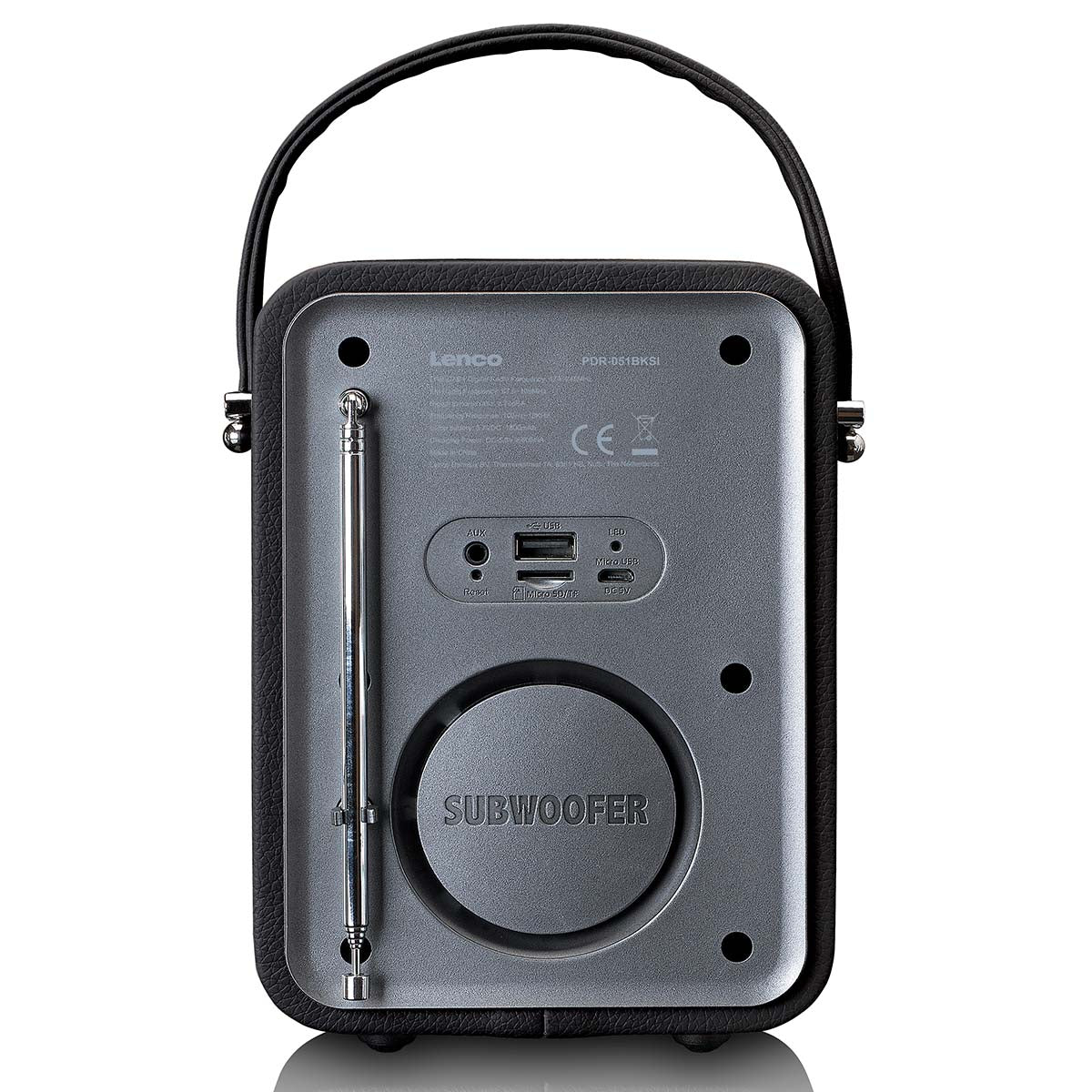 Désormais, où que vous alliez, la radio Lenco DAB+ PDR-051 voyage avec vous. Avec son poids de moins d'un kilo, ses 18 sur 13 cm et sa poignée pratique, plus d'excuse pour profiter uniquement chez vous de Lenco. Quand vous allez au parc avec vos amis, Lenco vous accompagne. Le subwoofer intégré à cette radio met en valeur les beats serrés.