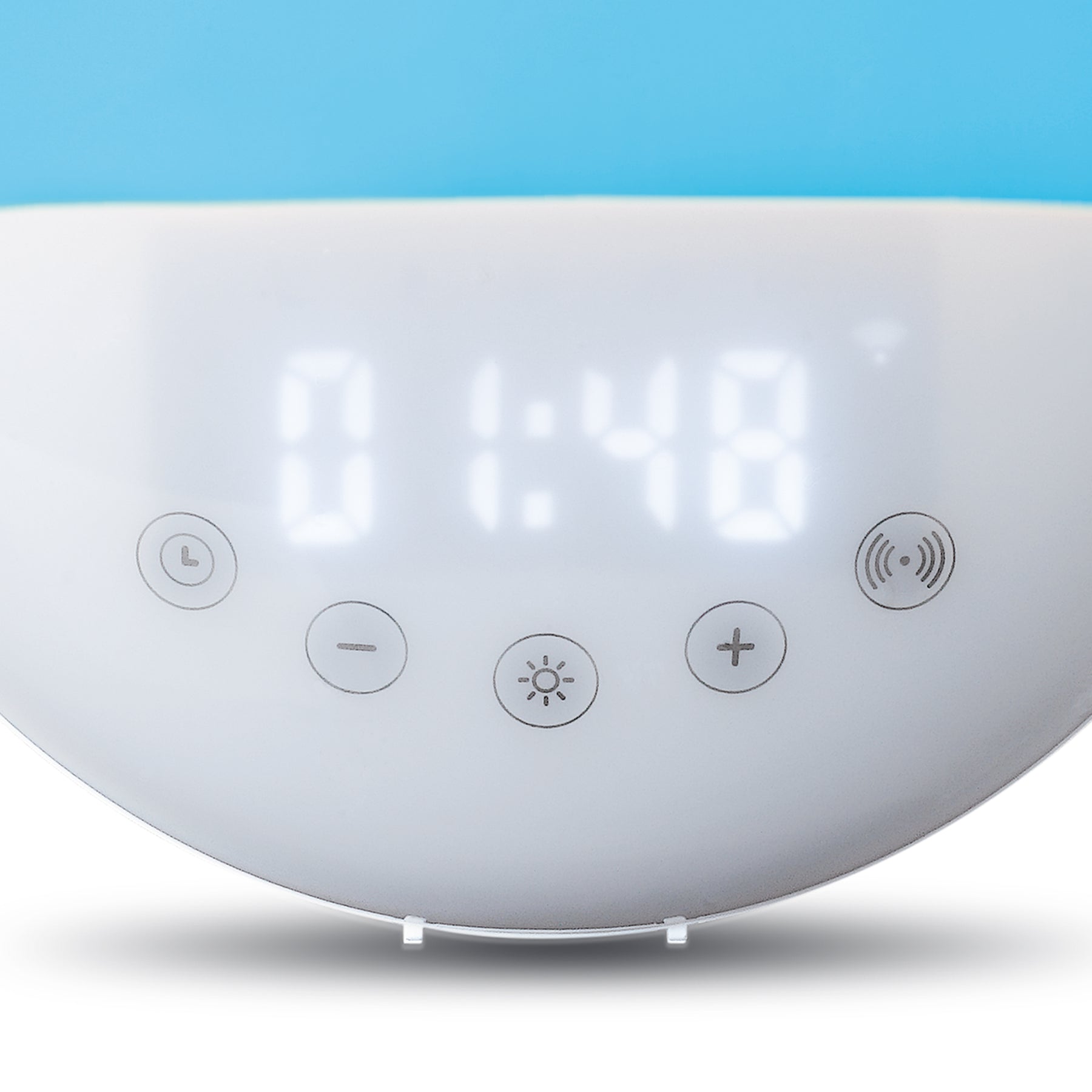Le réveil lumineux simule un coucher de soleil le soir et remplit à nouveau la pièce le matin avec la lumière du lever du soleil. En augmentant progressivement l'intensité lumineuse et en offrant une lumière qui change de couleurs, vous vous réveillez tout en douceur et vous préparez à une belle journée. L'éclairage est entièrement réglable parmi 30 réglages et différentes couleurs.