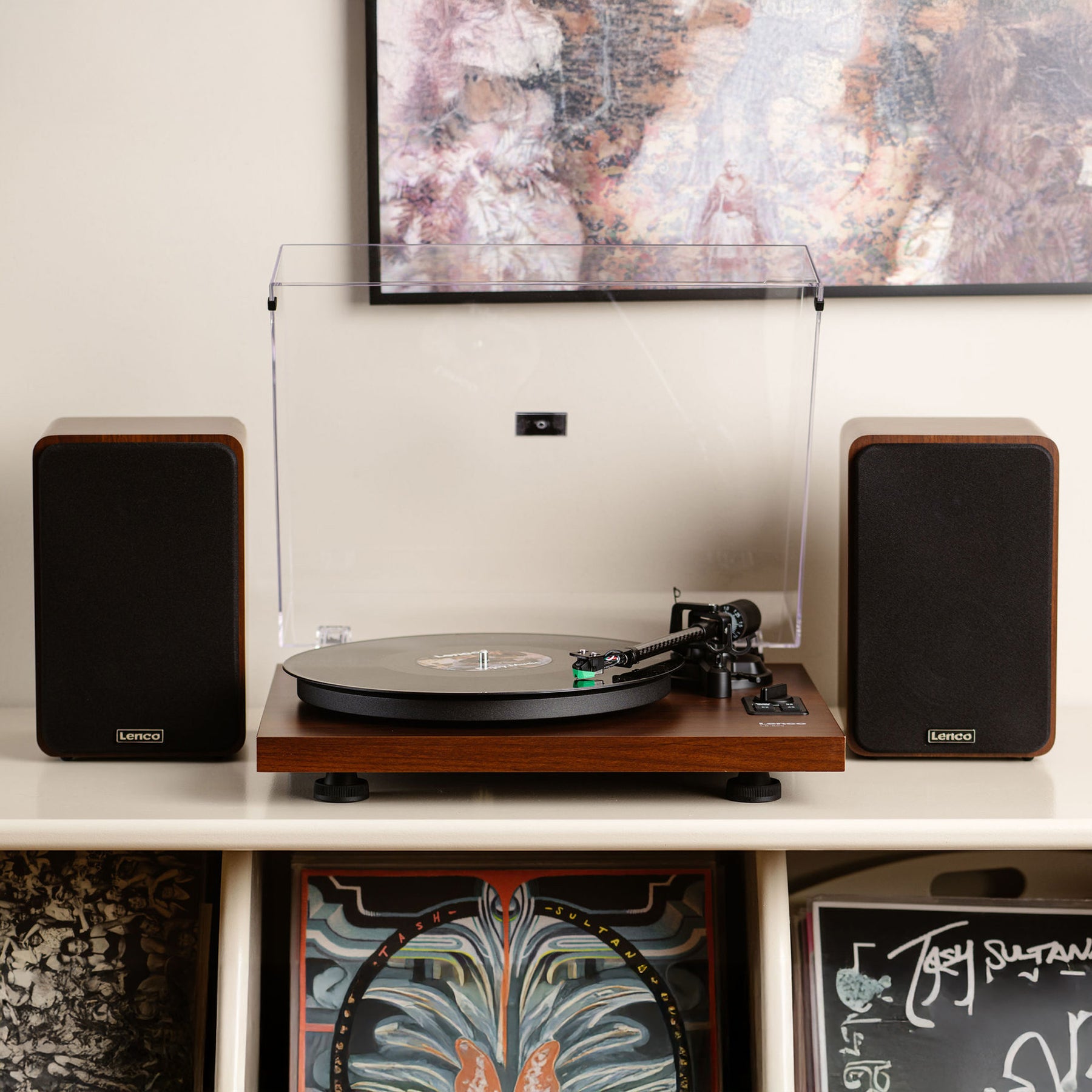 Le Lenco LS-600 est un tourne-disque avec 2 haut-parleurs en bois séparés et faciles à utiliser. Il vous permet de profiter de vos vinyles préférés en un rien de temps et les haut-parleurs inclus sont faciles à connecter.