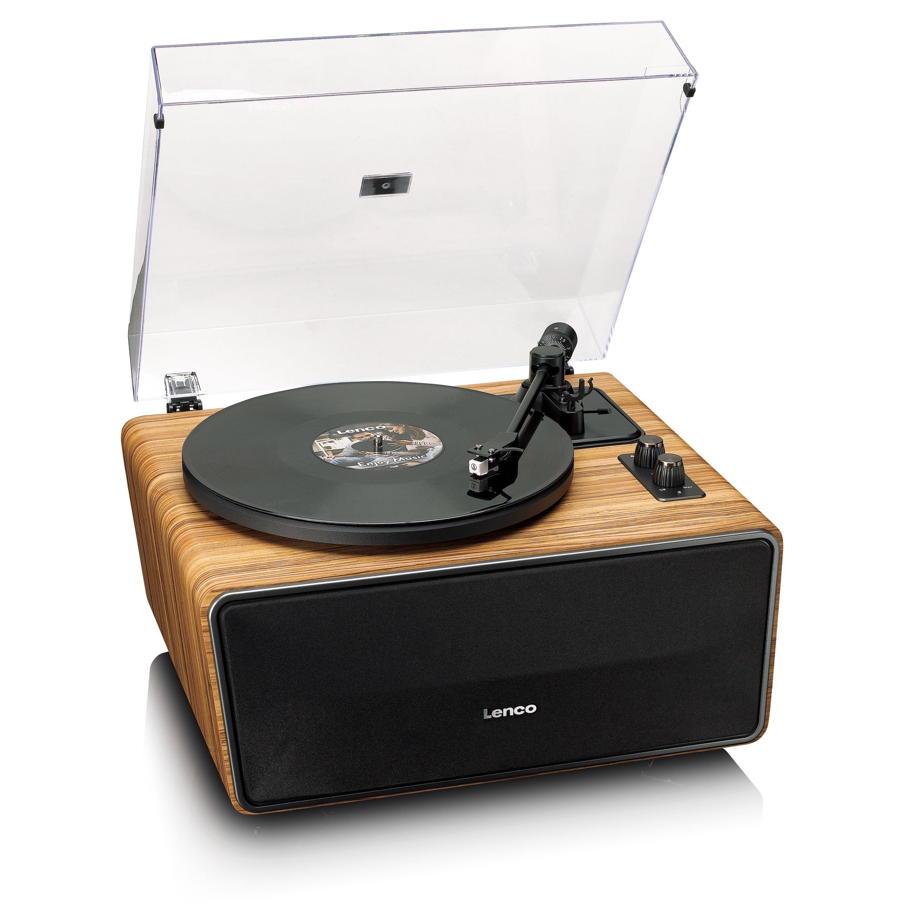 Découvrez le Lenco LS-570OK, une platine vinyle tout-en-un de la ligne Expertise de Lenco, avec un design magnifique et robuste dans la couleur élégante du chêne. Le LS-570OK est une platine avec haut-parleurs intégrés, entraînement par courroie et Bluetooth®, fournie avec une cellule Audio-Technica de haute qualité. Le couvercle anti-poussière amovible protège votre platine de la poussière, tandis que son design unique et sa finition en chêne élégante ajoutent une touche de classe à son environnement immédiat. Avec ses quatre pieds en bois de haute qualité, le LS-570OK n'est pas seulement une platine, mais une platine esthétique sur pieds, qui combine stabilité et style : un véritable objet de décoration dans chaque pièce !