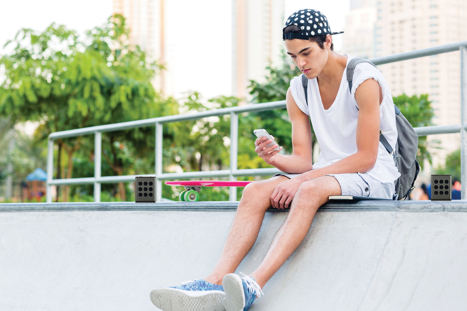 Grâce à la technologie Bluetooth intégrée, chacun peut jouer ses morceaux préférés depuis un smartphone ou une tablette. Vous pouvez également raccorder l’enceinte à l’aide de l’entrée AUX de 3,5 mm. Vous aurez ainsi toujours de la musique avec vous.