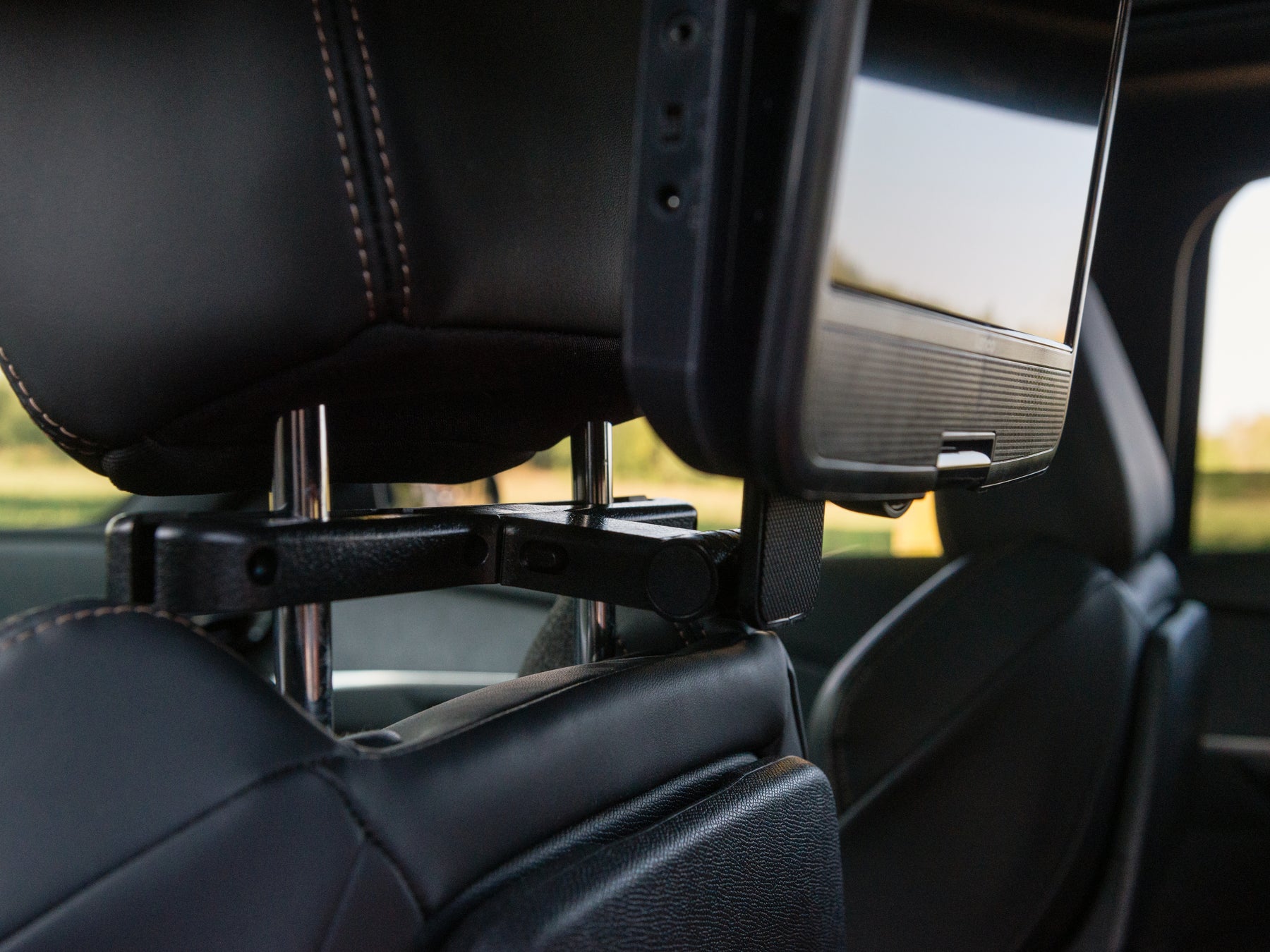- Inclus : 2x adaptateur secteur, 1x répartiteur 12V, 2x télécommande, 2x fixation pour appuie-tête, 2x casque
